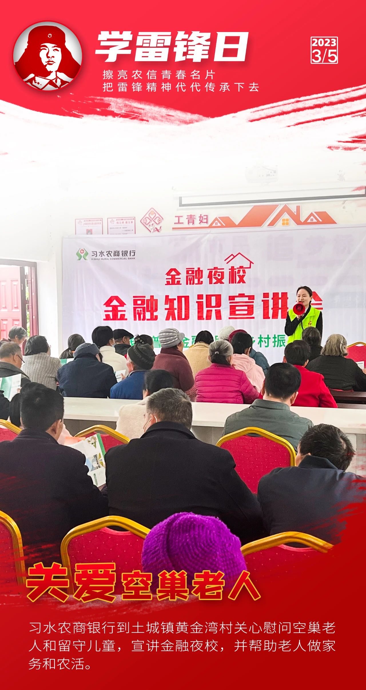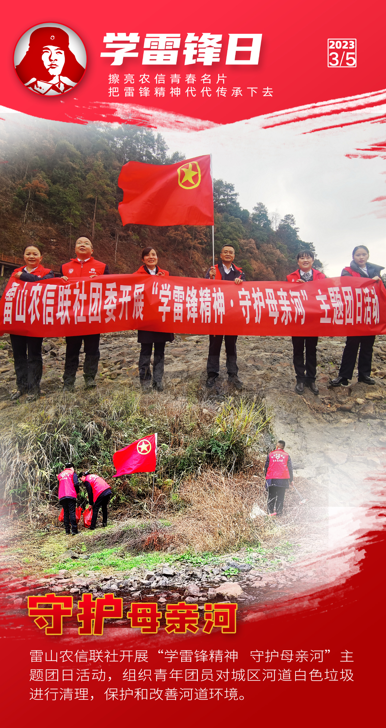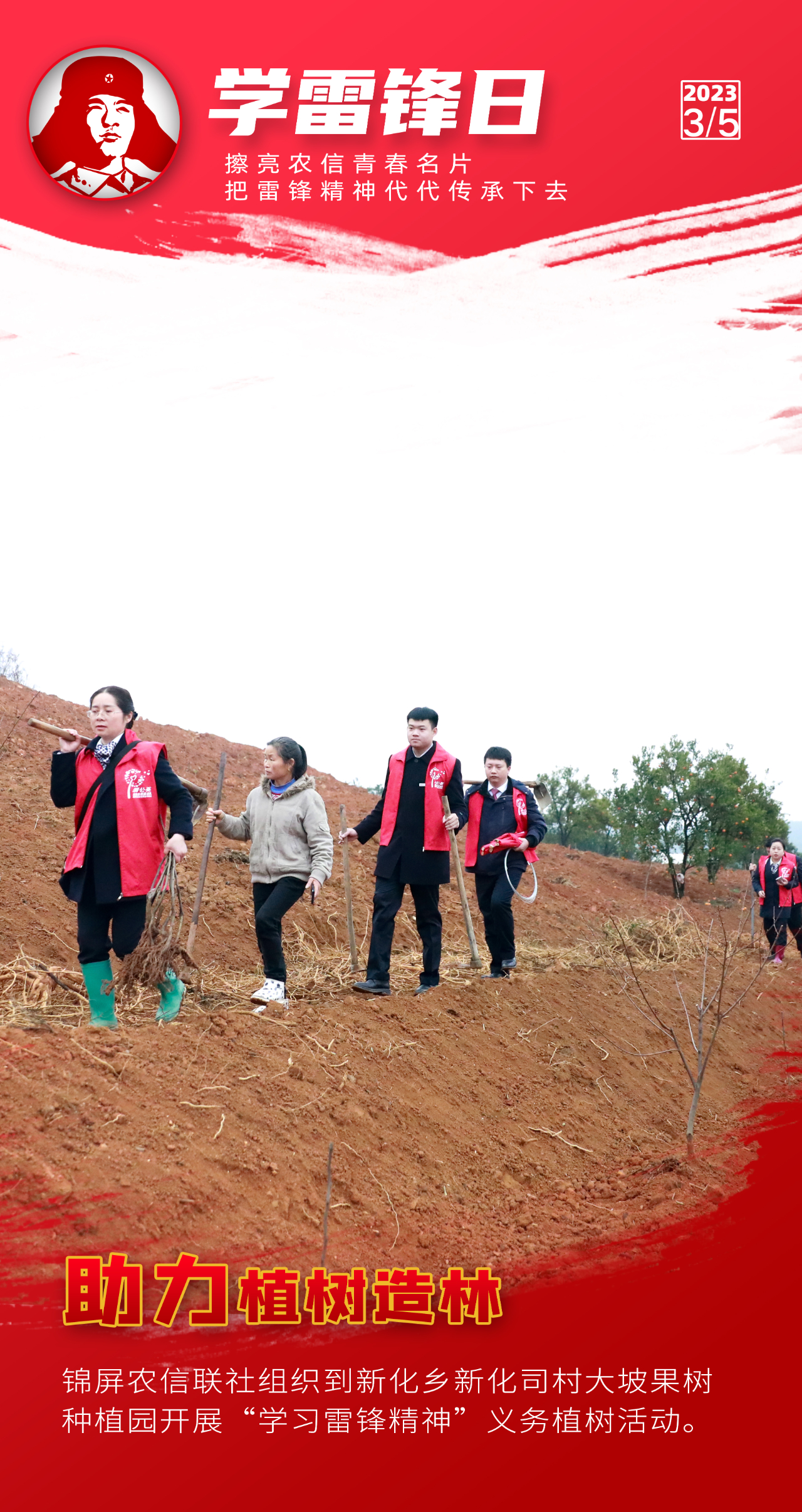 阳春三月,万物争春。今年是毛泽东等老一辈革命家为雷锋同志题词60周年。为深入学习宣传贯彻党的二十大精神,认真贯彻落实习近平总书记关于深入开展学雷锋活动重要指示精神,贵州农信各级团组织积极开展“弘扬雷锋精神擦亮青春名片”志愿服务主题团日活动,持续深化“擦亮青春名片”志愿服务品牌建设,创新志愿服务形式,提升志愿服务层次,在服务三农的最前沿、普惠金融的第一线、乡村振兴的主战场讲好新时代雷锋故事。