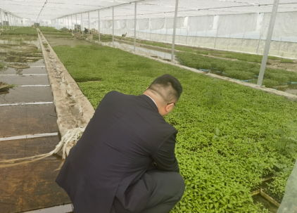 图为:工作人员到大棚了解辣椒苗长势