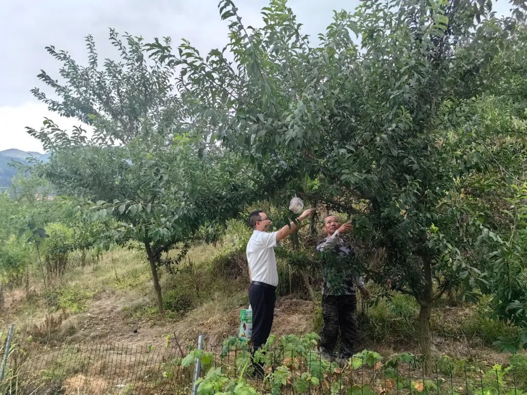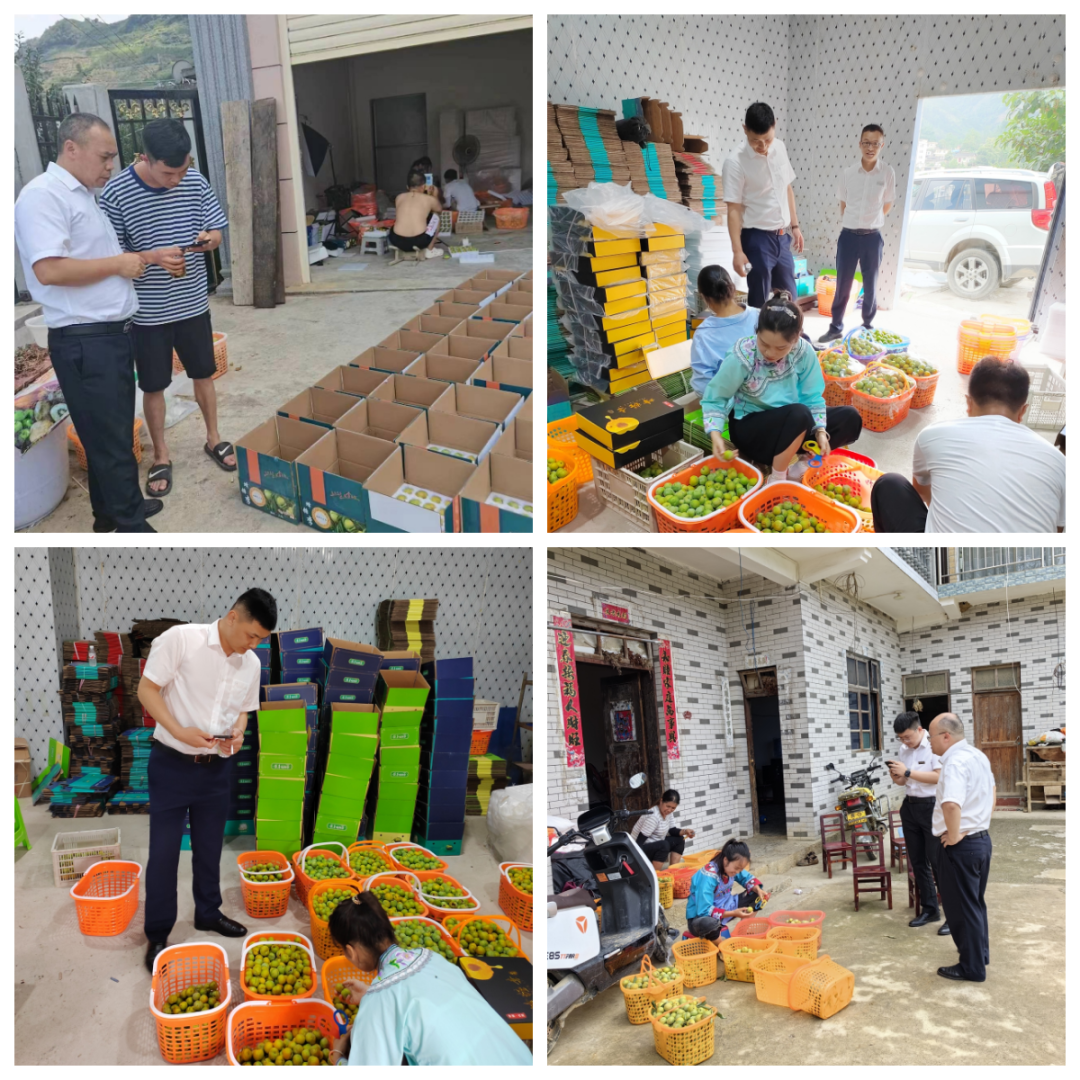 图为沙子信用社客户经理走访空心李最大种植户黎巧飞。