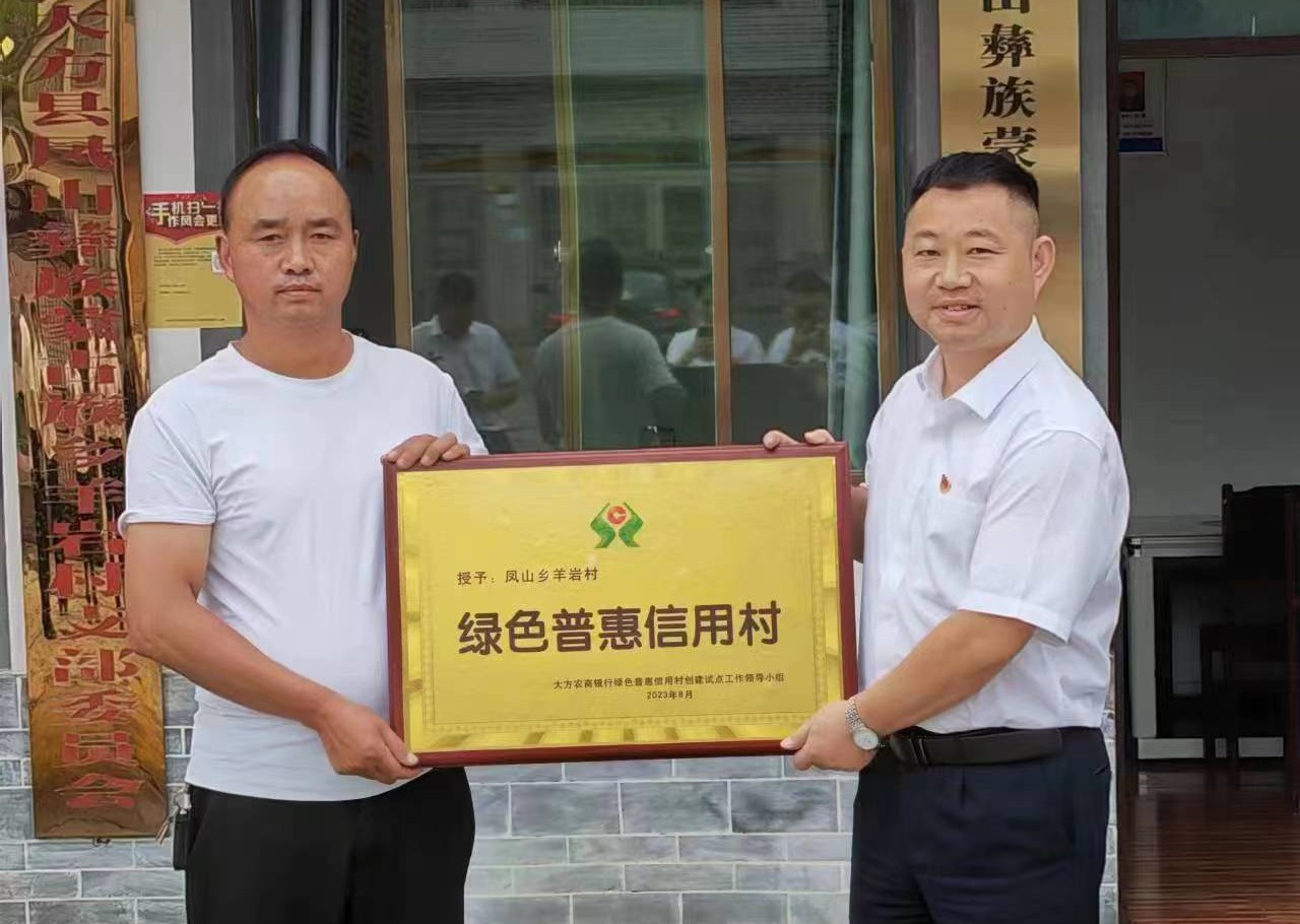 近日,贵州农信为大方县凤山乡羊岩村正式验收授牌“绿色普惠信用村”,在全省率先落地绿色普惠信用工程,标志着贵州农信探索搭建了主动服务生态文明建设与乡村振兴战略的可负担、可持续的常态化载体。
