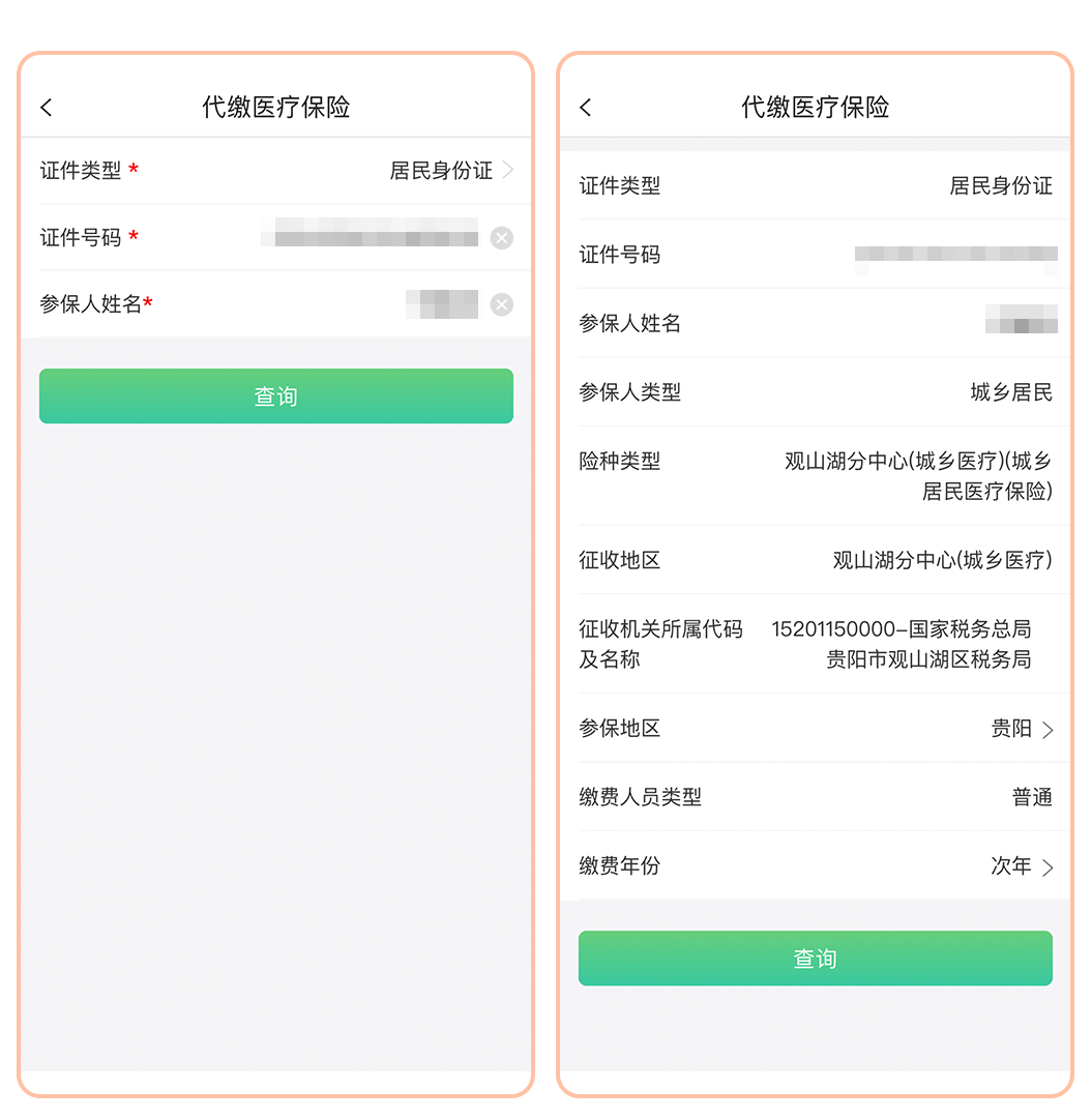 步骤三:输入参保人个人相关信息后,点击“查询”,核对相关信息无误后,点击“查询”