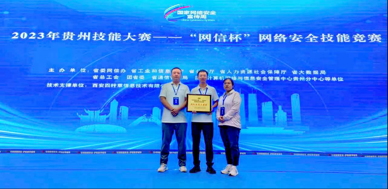 近日,由省委网信办、省工信厅、省公安厅、省人社厅、省大数据局、省总工会、团省委、省通管局、国家计算机网络与信息安全管理中心贵州分中心等单位联合主办的2023年贵州技能大赛——“网信杯”网络安全技能竞赛圆满落下帷幕。来自全省各地区、各行业、各领域800余名选手、203支参赛队伍参赛,参赛选手在省直和地区共10个赛道进行激烈比拼,创下“网信杯”竞赛史新高。由省联社信息科技部张莅、朱继平、余明虎组成的“黔农信安”团队代表省联社出战,经过激烈角逐,在团队决赛37支队伍中脱颖而出,取得了“团队决赛三等奖”的优异成绩,张莅荣获“优秀领队奖”。