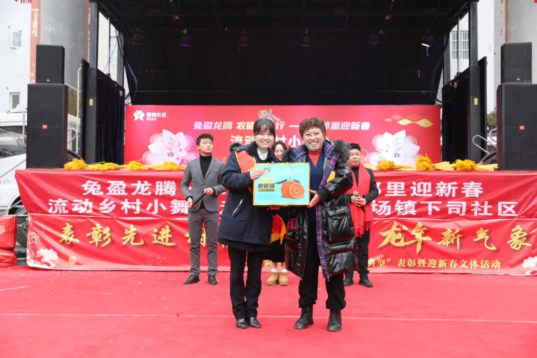 在黔西,农信员工洪明勇带领大家一起跳《科目三》,音乐一响,台上台下大家一起扭动起身体,动感的音乐、欢快的舞步表达大家对美好生活的向往,让人们感受到黔西群众的健康、快乐与自信。“能参加这样的活动,非常激动和荣幸。”锦绣社区的王阿姨高兴地说,“我特别喜欢舞蹈,今天和姐妹们的表演很受欢迎,感谢农信社为我们提供了展示才艺的舞台,希望这种活动以后也能多多举办。”看着乡亲们欢喜的笑脸,这份属于农信人的成就感油然而生。为营造积极向上的精神氛围,在新春来临时,部分地区还对乡村振兴中的涌现出的先进人物进行表彰,鼓励群众淬炼不懈努力和无私奉献的精神品质。在黔西锦绣社区,对社区内诚信商户、诚信新市民示范户代表进行了表彰,以此鼓励大家共筑诚信消费环境,营造诚实守信的良好金融生态。在瓮安下司社区,对2023年度表现突出的优秀党员、优秀退役军人、优秀居民组长、优秀联户长、优秀红村守护者以及优秀志愿者、优秀大学生和致富带头人进行了表彰。