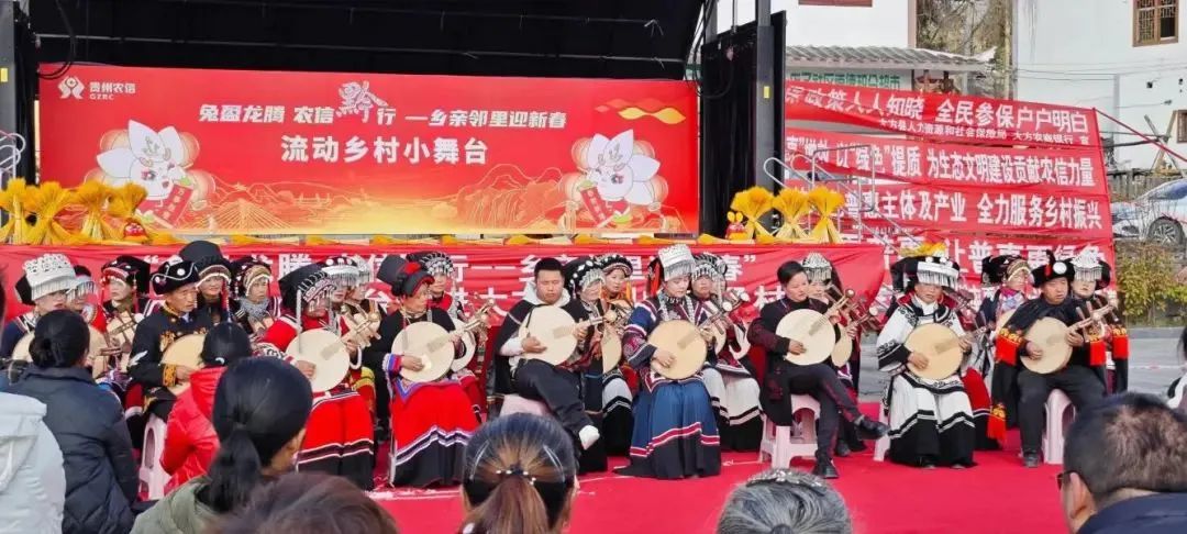 1月30日至2月20日,贵州农信在全省6个县(市)开展了6场“兔盈龙腾·农信黔行--乡亲邻里迎新春”流动乡村小舞台活动,不仅营造出“乡村邻里共贺新春社农同绘美好黔景”的和谐场景,还表达了农信社和乡亲们对家乡的热爱、对丰收的喜悦以及对来年美好生活的向往,营造出了一个热气腾腾的“大”氛围——大联欢、大互动、大温暖。