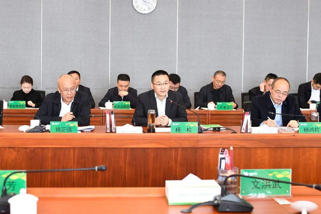现场调研结束后,文洪武召开调研座谈会。会上,省联社党委书记杨松对文洪武行长一行的到来表示热烈欢迎,对人民银行贵州省分行对贵州农信改革发展的关心支持表示衷心感谢。杨松对过去一年全省农信支持实体经济、防范化解风险、抓牢内控案防、开展金融创新等方面的工作情况进行了详细汇报,并就绿色金融、再贷款方面提出了工作建议。