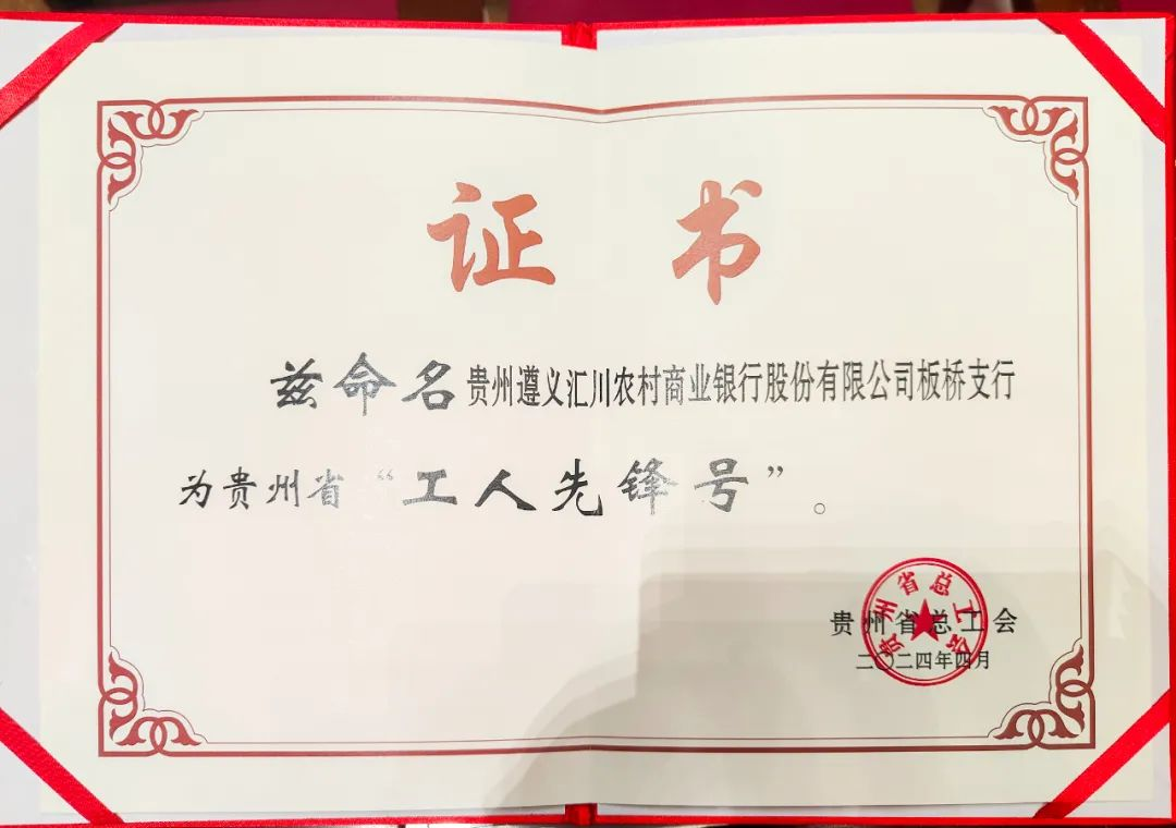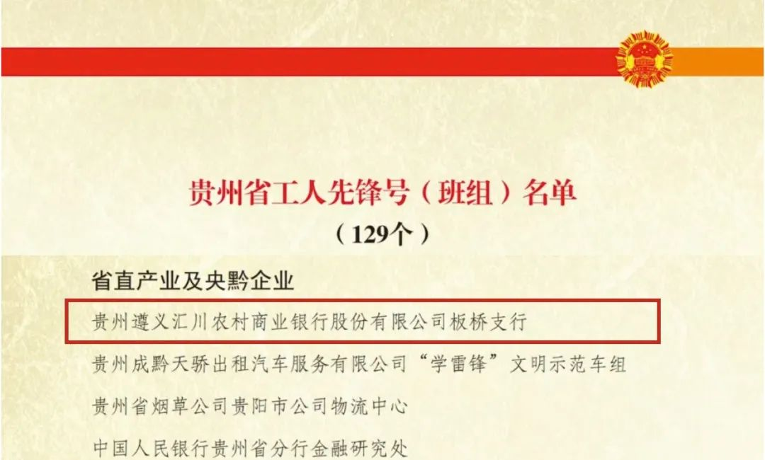近日,为进一步增强新时代新征程广大职工的自豪感和使命感,营造劳动光荣的社会风尚和精益求精的敬业风气,贵州省举行庆祝“五一”国际劳动节暨表彰大会,贵州农信汇川农商银行板桥支行荣获“贵州省个人先锋号”并现场领奖。