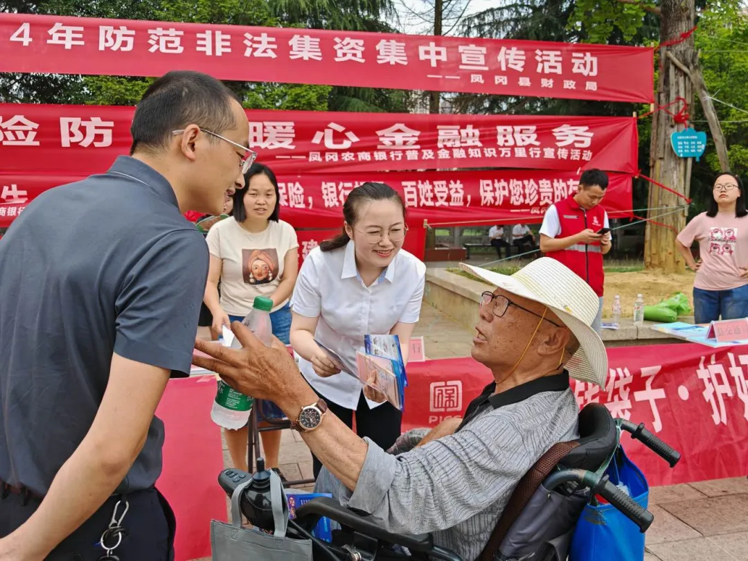 6月14日,凤冈农商银行联合县法院、县公安局、县监管支局、县财政局、县民政局等多家行政机关单位在凤冈县凤凰广场开展打击非法集资大型宣传活动,提醒广大群众坚决抵制“投资理财”、“回购返利”、“高利诱惑”等高额回报的诱惑,梳理正确的投资、消费观念,自觉远离非法集资,牢牢守住自己的“钱袋子”,时时护好自己的“幸福家”。