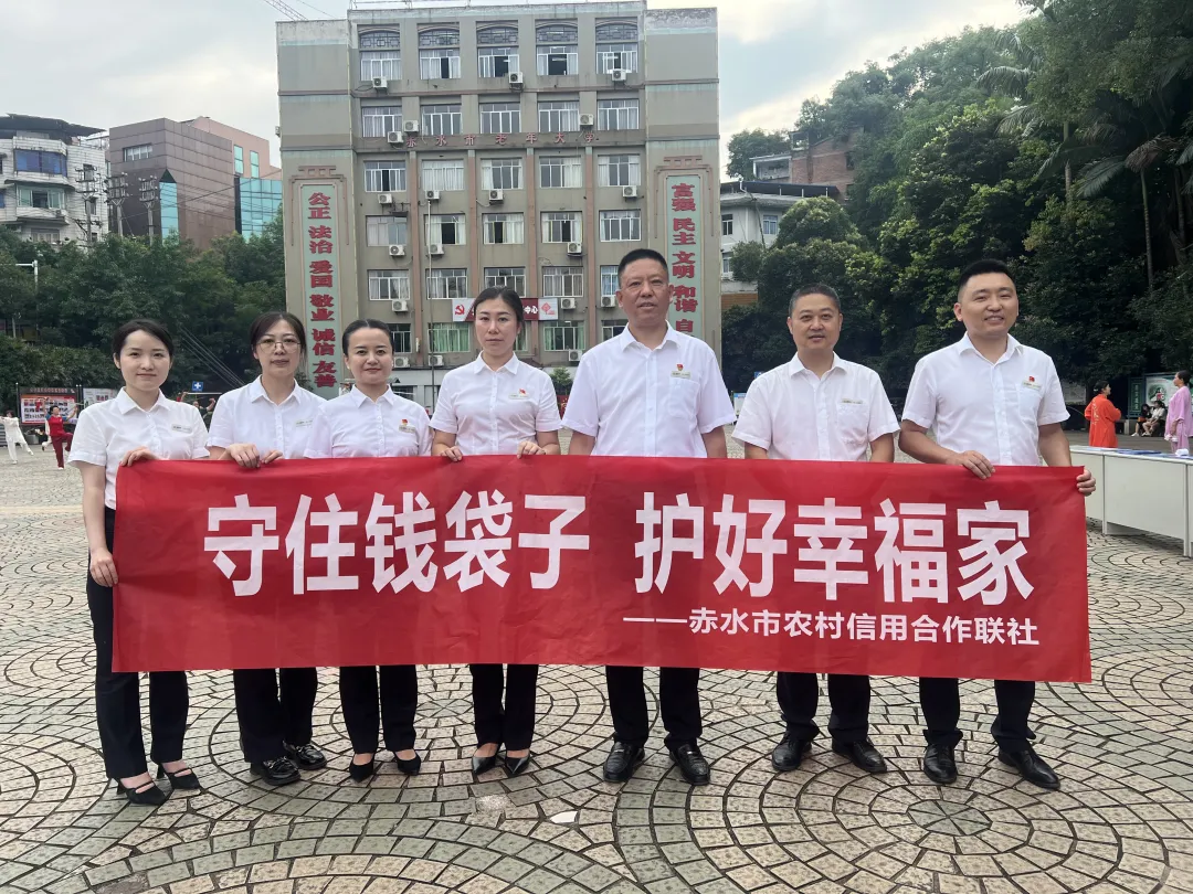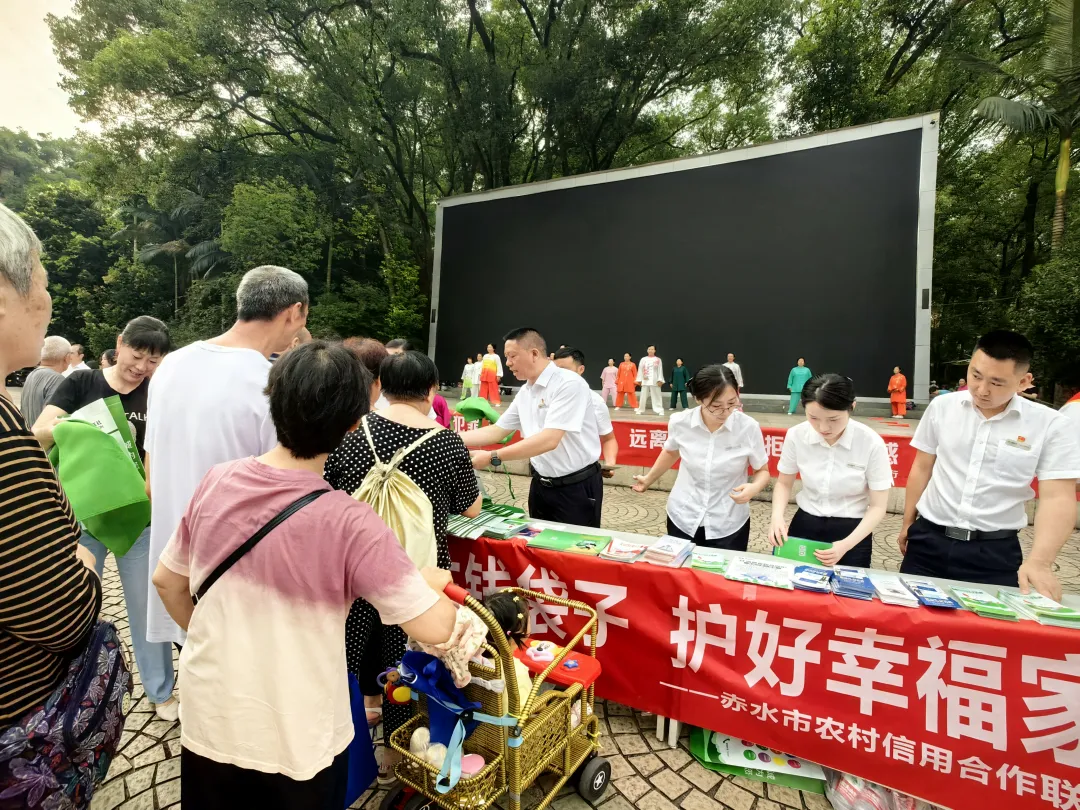 6月14日,赤水农信联社在赤水市香樟林广场开展以“守住钱袋子,护好幸福家”为主题的大型宣传活动。联社主要领导与部分部门、机构相关人员参加活动。