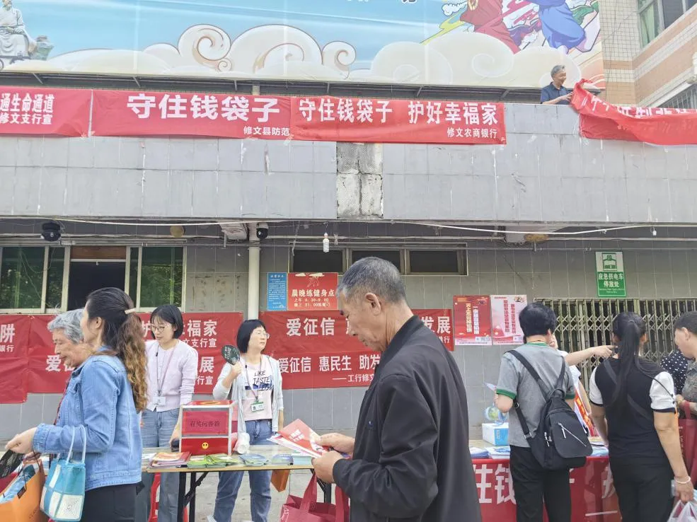 6月14日,修文农商银行联合县直各相关部门、国家金融监督管理总局修文县监管支局筹备组、人行修文县支行、辖内各金融机构在修文县体育馆外东广场开展以“守住钱袋子护好幸福家”为主题的“6·15”防范和处置非法集资集中宣传活动。通过发放宣传漫画手册,引导群众参观宣传展板,积极向现场群众宣讲防范和处置非法集资条例、消费者权益保护八项权利及五种维权方式、存款保险、个人征信、反假币等相关金融知识,共发放宣传手册600余份,摆放宣传展板4块,解答群众咨询260余人次。