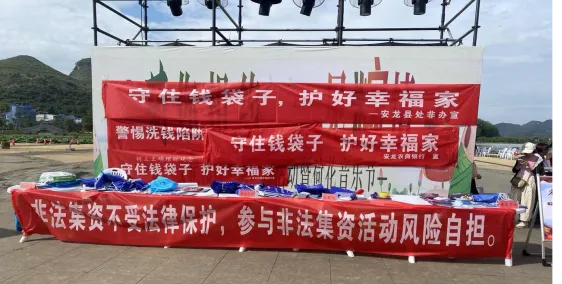 6月15日上午,紫云自治县财政局组织全县各金融机构在印山广场开展防非集中宣传活动,紫云农商银行通过以案说法、以案示警,与各单位一起形成宣传合力,营造了浓厚的宣传氛围,使远离“保本高收益”的理念深入人心,警示社会公众自觉抵制非法集资。该行还拍摄制作了原创短视频《对非法集资PUA说“NO”!》,并通过微信视频号、抖音号等官方自媒体宣发扩散,切实提升宣传渗透性和群众接受度。