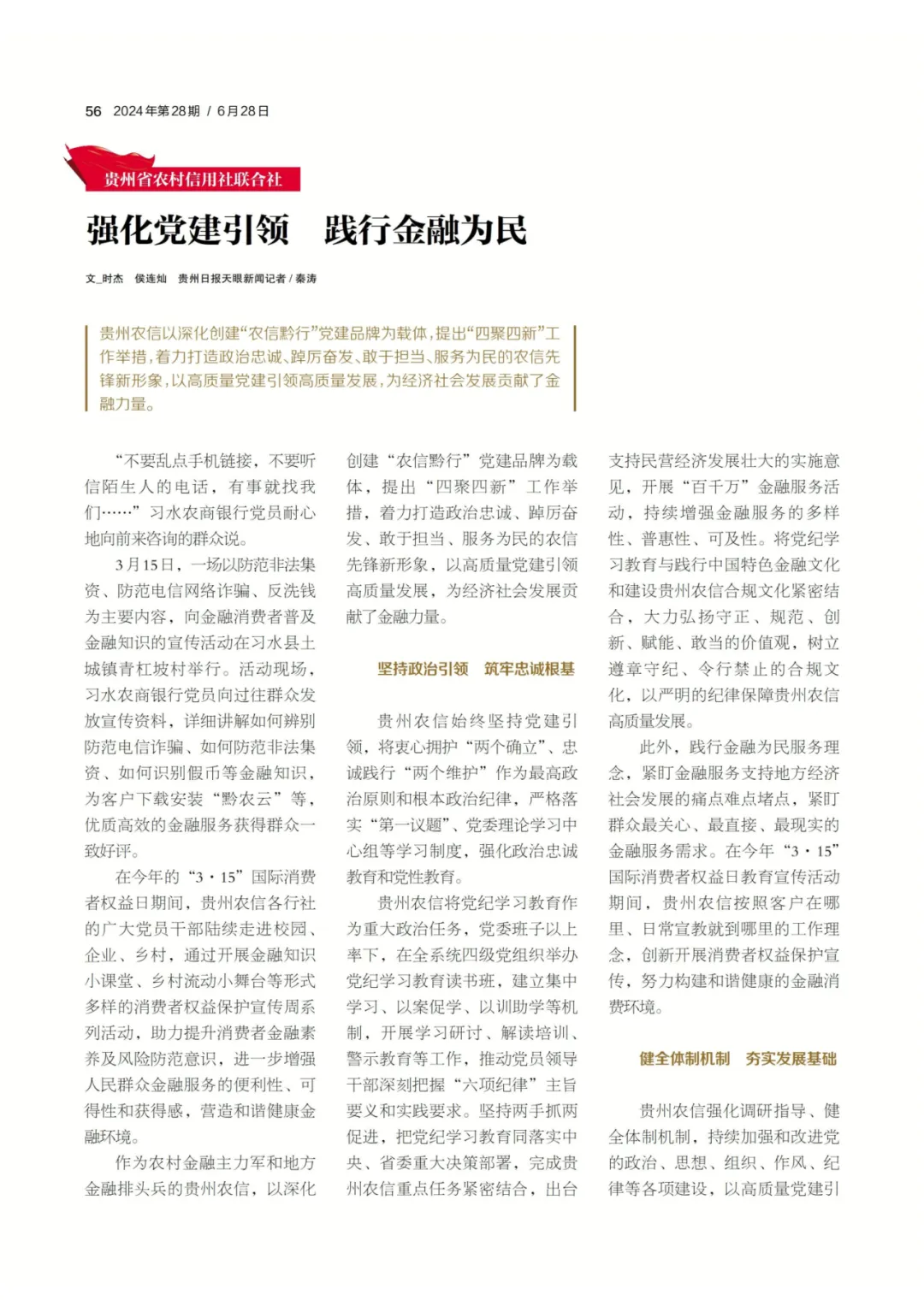 当代贵州|贵州农信:强化党建引领,践行金融为民