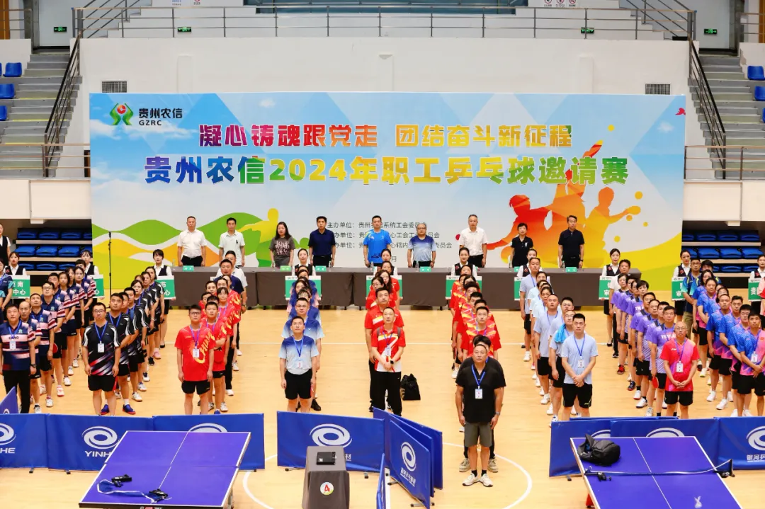为进一步丰富职工文体生活,增强凝聚力和向心力,8月10日,贵州农信在贵阳成功举办了以“凝心铸魂跟党走团结奋斗新征程”为主题的乒乓球邀请赛。本次比赛由贵州农信系统工会主办,省联社贵阳审计中心承办,贵阳辖内6家行社协办,省联社及各市州审计中心代表队11支队伍,特别邀请了贵州金融控股集团有限责任公司嘉宾队伍参赛。省联社党委书记、理事长杨松出席开幕式,贵州金控集团党委书记、董事长胡凯受邀出席。
