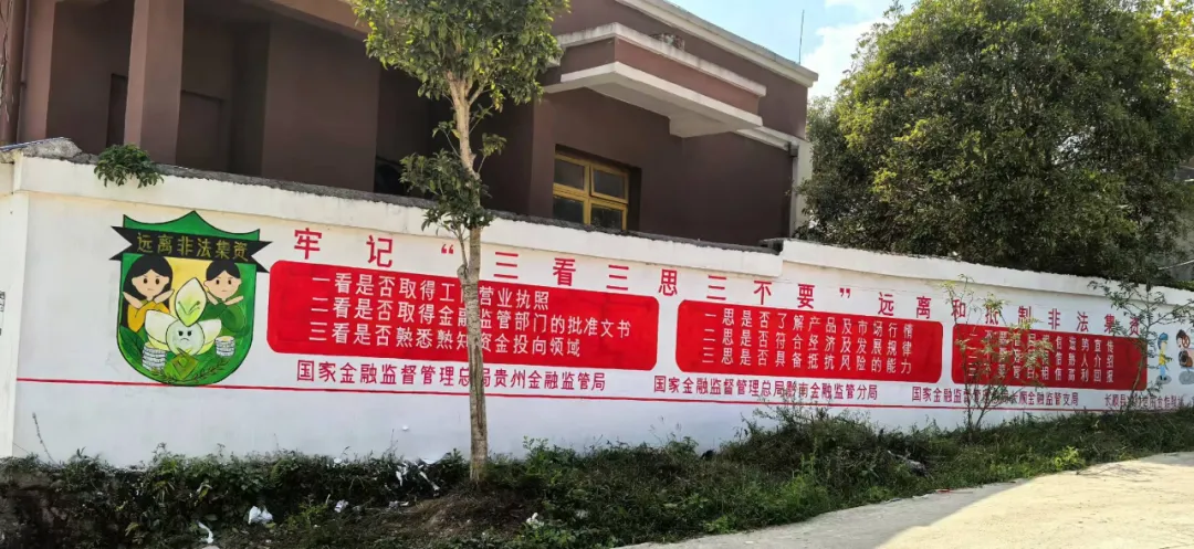 9月中旬,长顺农信联社来到广顺镇花红村,主动对接村支两委,积极推进金融教育下沉基层,开展“我为村民刷面墙”文化墙宣传活动。在花红村村支两委的大力支持下,长顺农信联社选取“金融消费者八项权益、防范电信网络诈骗、防范非法集资”等与群众生活息息相关的金融知识和风险防范要点,用墙绘、文字标语、宣传海报等作品形式,将金融知识送到村民家门口,让金融知识贴近村民生活。