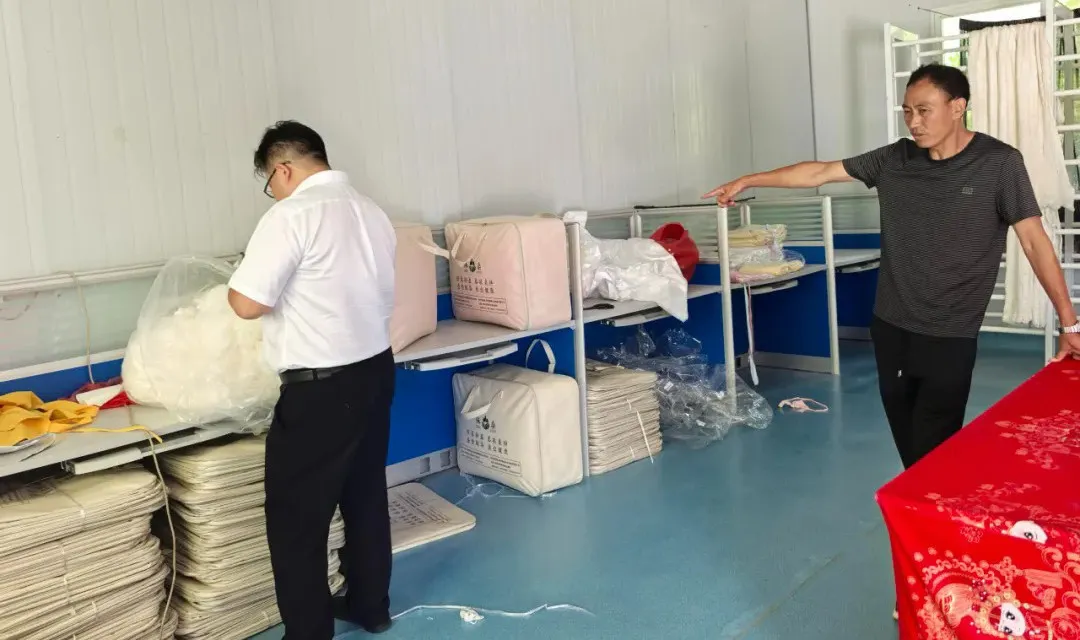 ▲茶店支行客户经理在王旭丝制产品加工间回访