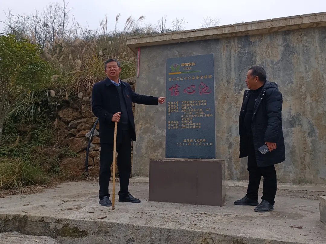 到村后,任晓军拄着那根拐杖走访调研,撰写详细报告,积极争取到贵州信合公益基金50万资金用于修建水池。为寻找水源,他和村支两委拄着拐杖翻山越岭,历时两个多月,终于在6公里外的老寨村找到水源。2021年12月,200立方米的高位“信心池”建成投用,解决了人畜饮水和产业发展用水问题,让曾经搬走的村民又回来了,村子也热闹了起来。