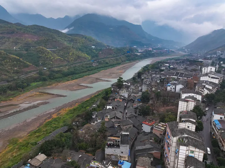 位于遵义市习水县的四渡赤水之土城渡口(2025年1月7日摄,无人机照片) 新华社记者刘续摄