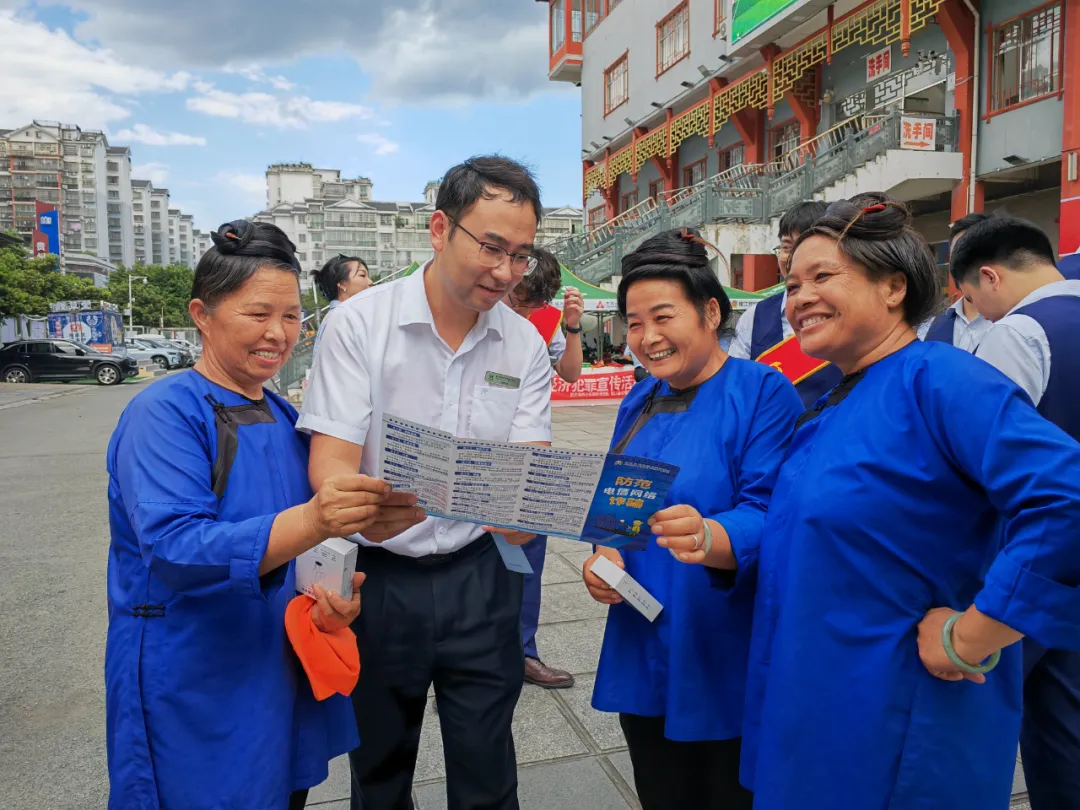 为了切实提高人民群众对电信诈骗的防范意识,贵州农信充分发挥网点数量多、覆盖面广、贴近基层、接近群众的行业优势,线上线下相结合、银政企多重联动、宣传与排查整治并举,深入农村、集市、社区、学校、企业等人员密集型场所,开展了形式多样的宣传活动。