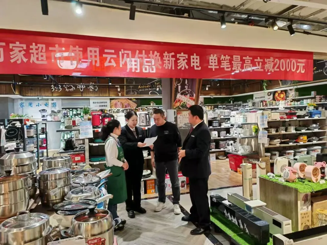 通过“银行+商户”联动模式,开展以旧换新专项活动,农商银行(联社)工作人员入驻汽车、家电卖场,向客户宣传多彩贵州欢乐购消费品“以旧换新”活动以及“黔农云”及“黔农e付”等金融产品,靠前做好消费品更新金融服务,充分激发以旧换新消费市场活力。
