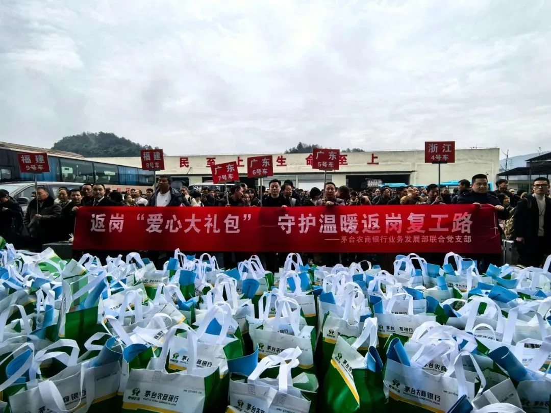 春节气息还未散去,仁怀市在客运总站举行2025年春节有组织输出返岗复工欢送活动,茅台农商银行工作人员将精心准备的500余份“爱心礼包”送到准备外出就业创业的仁怀籍老乡手中,并祝愿他们工作顺利、事业顺心,用实际行动温暖春节返岗复工路。