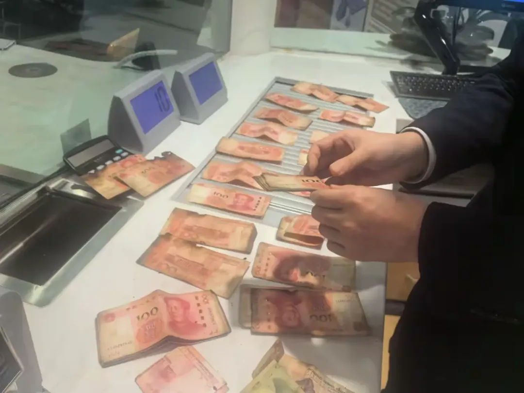 事发当日,一位年过七旬的老人急匆匆走进大都支行营业大厅,神情焦虑地向工作人员求助。原来,老人为支付家中建房工人的工资,从银行取出现金后,因工人未及时领取,担心家中存放不安全,便携带现金下地劳作。不幸的是,因意外现金不慎被引燃,造成部分损毁。面对老人的困境,大都支行的工作人员迅速行动,一边耐心安抚老人情绪,一边严格按照中国人民银行残损币兑换标准,对火烧币进行了细致清点、鉴别与整理;经过2个小时的努力,最终成功为老人兑换了8770元火烧币,最大程度地减轻了老人的经济损失。