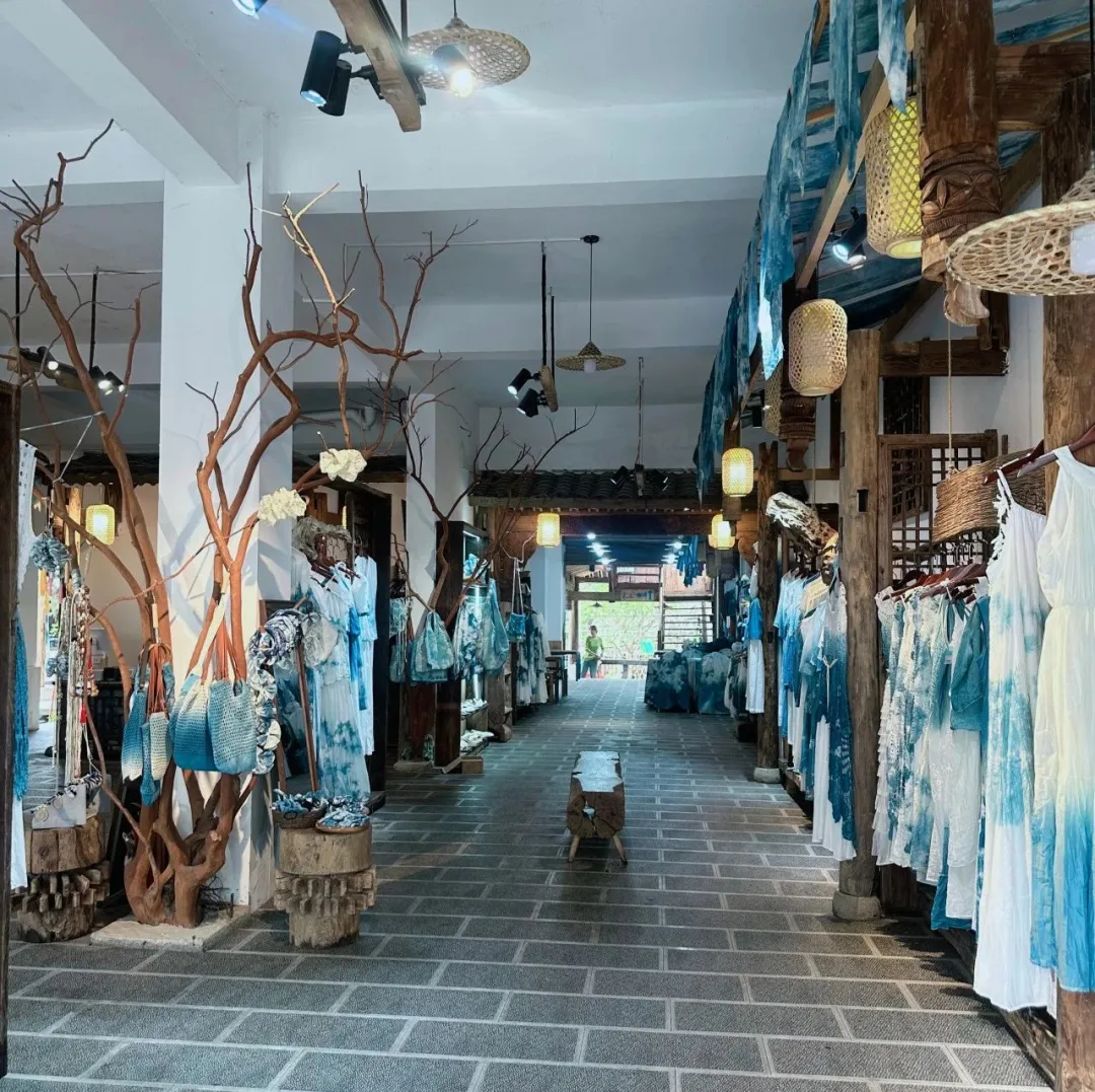 在兴义市万峰林下纳灰村的徐查清技染文化馆里,老板娘王韦香每天都十分忙碌。“浸—扎—染—晾,这是扎染最基本的步骤,也是游客最喜欢的体验项目,这段时间万峰林火爆出圈,我们体验馆的生意也越来越好了”。据了解,王韦香接触扎染这项非遗工艺已有10余年,刚开始只是自己小规模地扎染成品进行售卖,销售方式单一、品种较少。后来,这对90后年轻夫妻敏锐地察觉到很多游客都对扎染、木雕等手工制作的过程十分感兴趣,于是,他们毅然决然转变思路,将目光投向游客如织的万峰林景区。如今已发展成为集展示销售与体验为一体的文化馆和研学基地,一楼是扎染体验区和成品销售展示区,二楼作为木雕工坊,随处可见一个个栩栩如生的木雕手工作品。