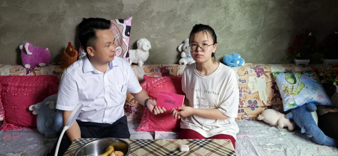 7月22日,剑河农商银行南明支行行长罗开诚携支行员工,带着浓浓关怀与真挚祝福,前往小兴村向这位在逆境中绽放光彩的学子送去热烈祝贺与深切慰问。