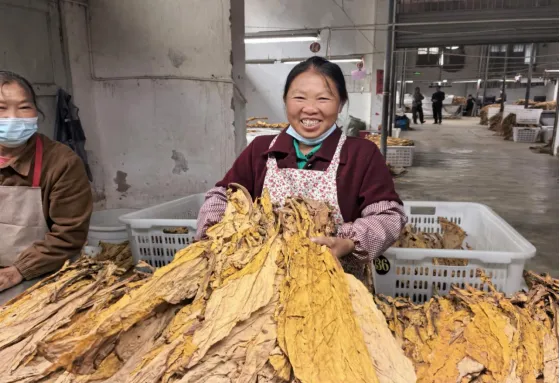 清晨的阳光刚漫过田埂,烟农罗朝珍早已蹲在烤烟垄间,双手握住成熟的烟叶根部,稍一用力便将叶片完整摘下,熟练的放进身后的竹筐里。“多亏了镇远农商银行发放的20万元‘烟商贷’,及时解决了我的资金难题,让我能够及时购买化肥和农具,这100亩烤烟幼苗才能准时移栽,没有耽误到农时”罗朝珍感激的说道。今年年初,镇远农商银行尚寨支行客户经理在开展春耕备耕走访期间,了解到罗朝珍种植困难之后,及时开展调查,主动上门服务,综合分析研判后,支行当日便成功为罗朝珍发放“烟商贷”20万元,当贷款资金到账短信“滴滴”响起时,罗朝珍握住客户经理的手激动的说到“还是农商行靠得住,以前贷款要来回跑好几趟,现在直接将资金送到田间地头,真是帮了我大忙了,万分感谢啊。”诚恳的感谢声仿佛还停留在耳边,转眼就到了丰收季,田地里随风飘动的“金叶子”成就了镇远县714户烟农的致富梦,为乡村振兴注入了强劲动能。