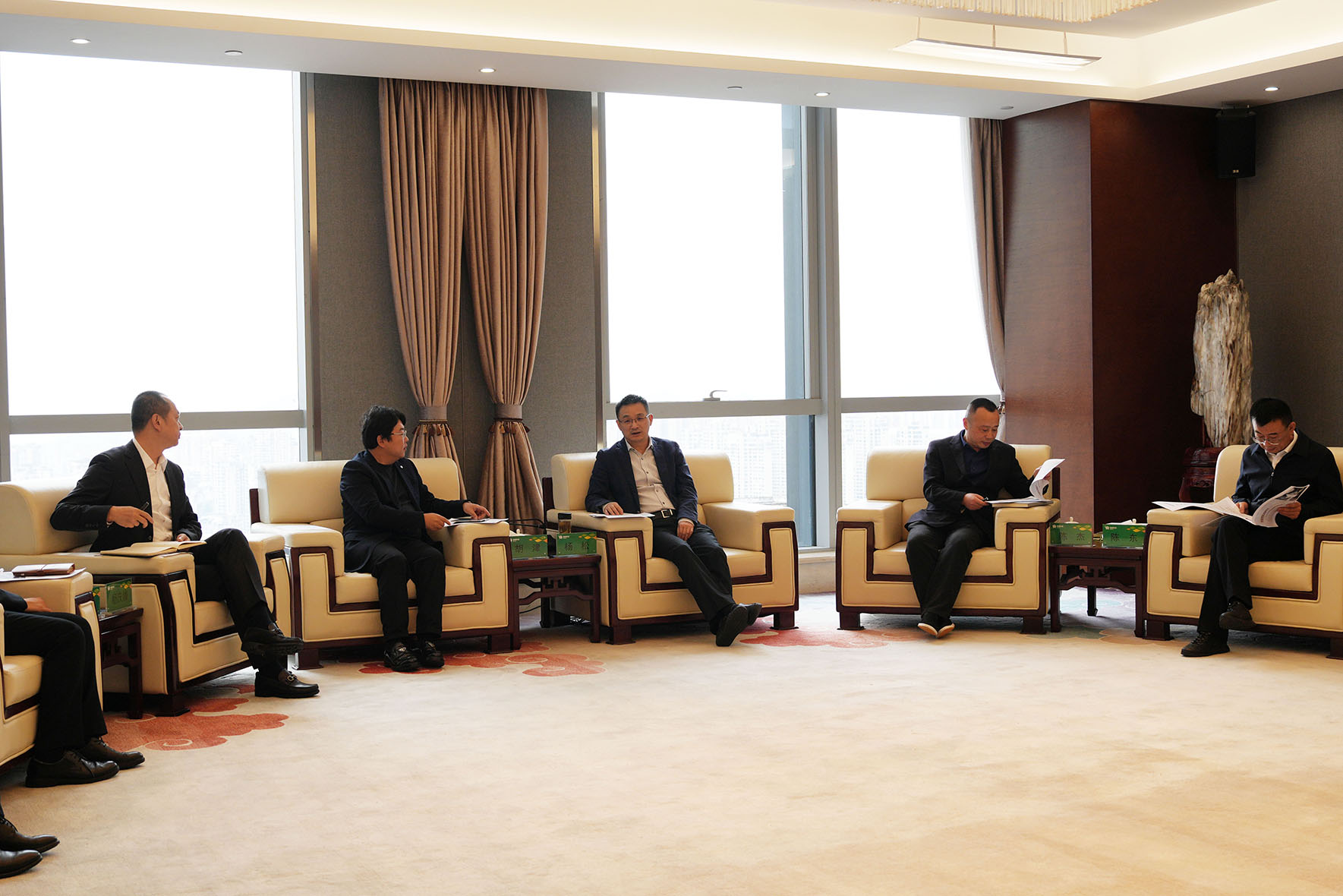 11月4日下午,省联社与招商银行贵阳分行就深化同业合作、共同服务全省经济社会高质量发展等方面开展了深入交流。省联社党委书记、理事长杨松,党委委员、副主任陈杰,招商银行贵阳分行党委书记、行长胡津,党委委员、行长助理杨庆锋出席。