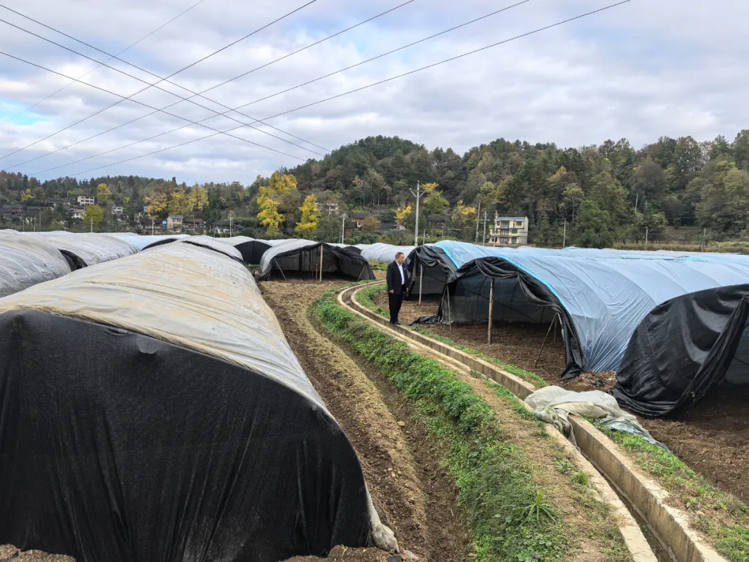 立冬犁声响,新土覆寒霜。目前,正值羊肚菌种植关键时期,镇远县羊场镇罗家湾羊肚菌种植基地内一派繁忙景象。标准化大棚分区规整、排列有序,畦垄顺棚势延展,机器轰鸣声与劳作身影交织,种植户们分工明确,井然有序开展翻耕、播种、施肥、覆膜等作业,为来年丰收筑牢基础。